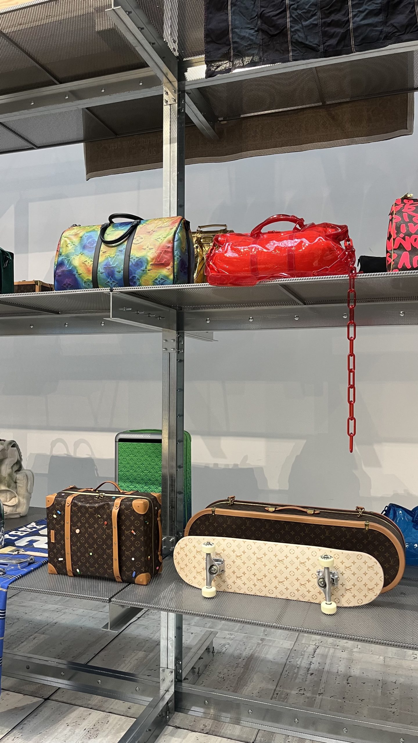 L’exposition joue subtilement du contraste entre intimité et grandeur. On y trouve des croquis fragiles, des imprimés esquissés, des pièces ne prototypes jamais commercialisées autant de traces d’une pensée en veille, en germination. Puis surgit la monumentalité : collaborations spectaculaires, sneakers iconiques, installations immersives, espaces reconstitués comme celui du mythique concept store Colette. L’objet boutique devient décor, le décor devient objet.
